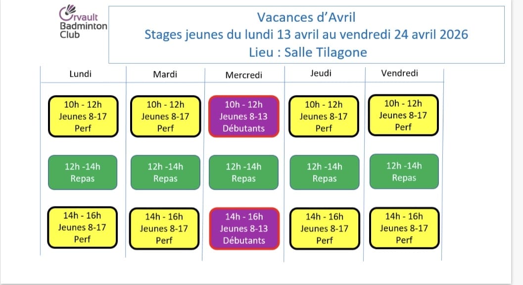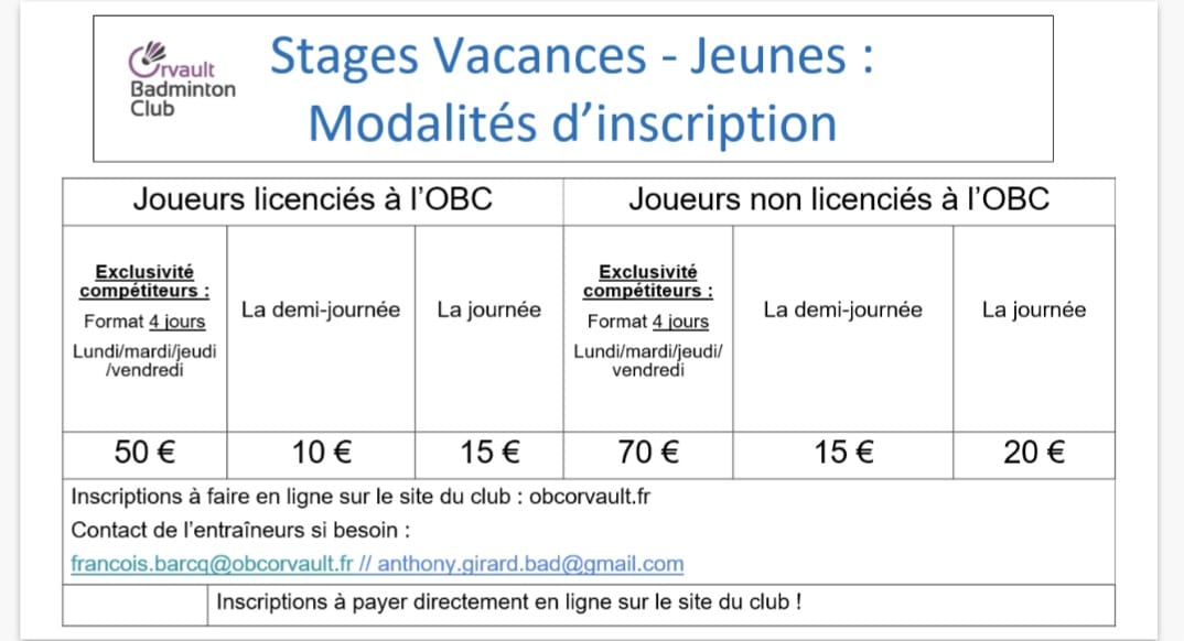 Nouveauté pour ces vacances : la possibilité pour les joueurs confirmés de s'incrire pour la semaine complète (lundi, mardi, jeudi et vendredi) à tarif préférentiel.